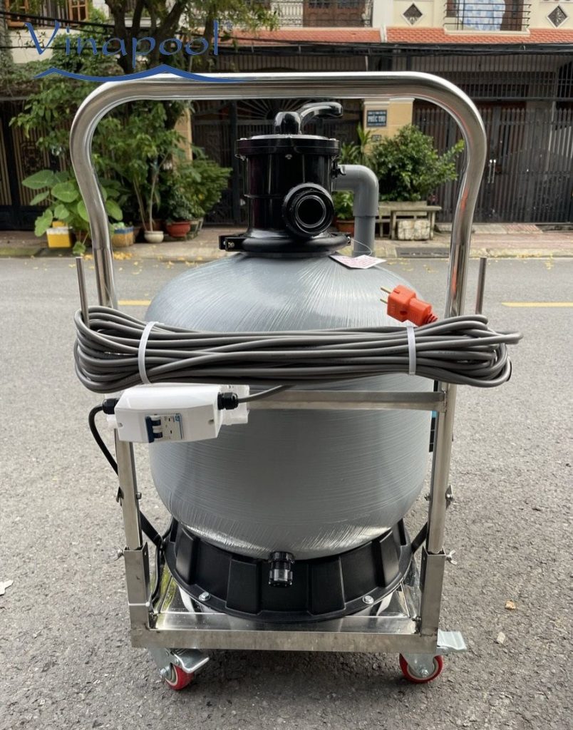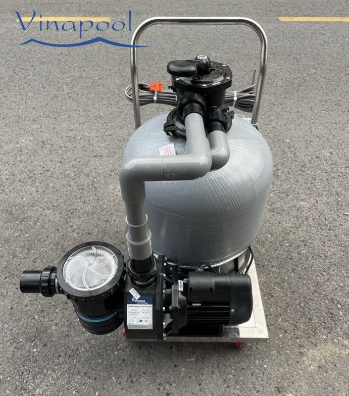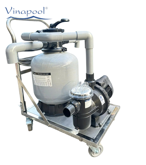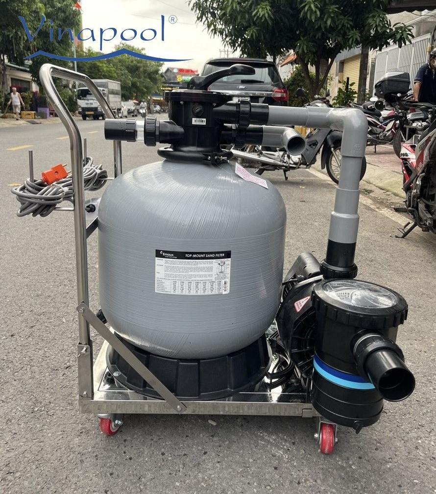 Bộ vệ sinh di động Emaux bao gồm: Bơm SB10 1HP, bộ lọc cát V500, 100kg cát sỏi, xe đẩy inox 304, ống mềm 15m, bộ phụ kiện ống nối (co, 2m ống nối, CB LS Hàn Quốc, 20m dây điện)