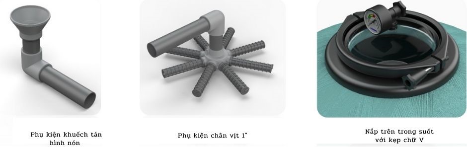 Kết nối với van đa cổng sáu vị trí với các chế độ: lọc, rửa ngược, xả, tuần hoàn, xả thải và khép kín.