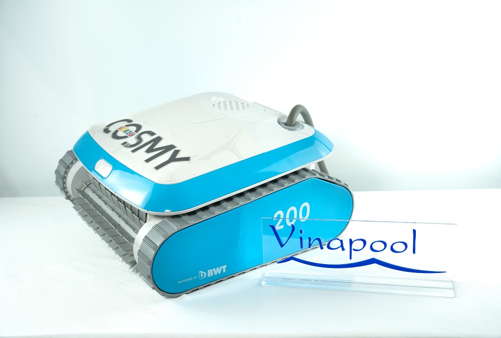 Cosmy 200 là robot nhẹ và thân thiện với người dùng, tương thích với mọi hình dạng bể bơi và vật liệu xây dựng. Với cáp nổi dài 16m, nó có thể làm sạch các bể bơi có chiều dài lên tới 10 m.