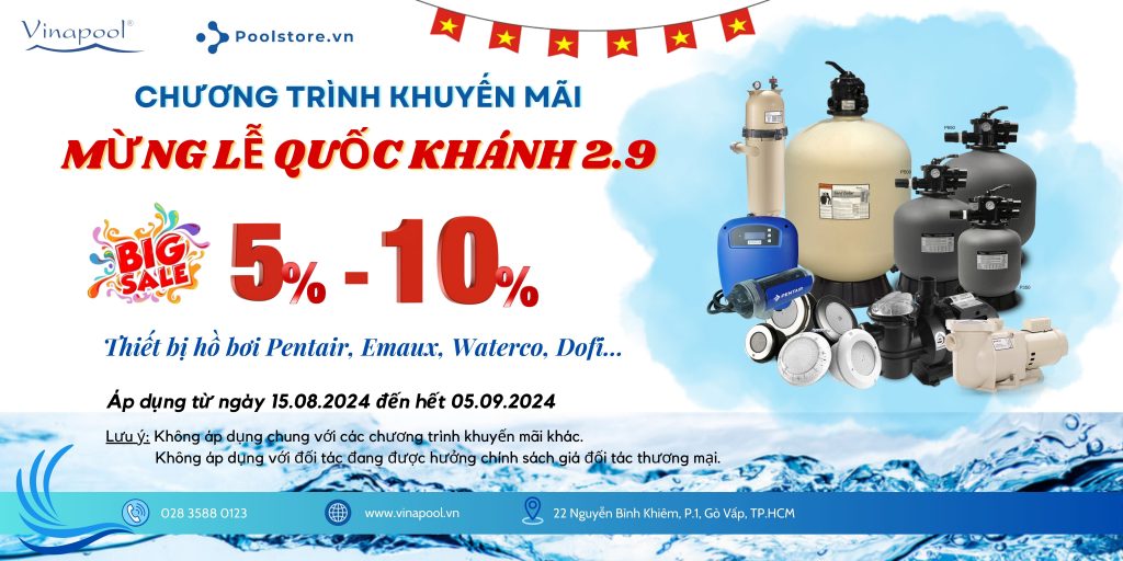 Hãy truy cập ngay Vinapool để tham quan các mặt hàng ngành hồ bơi vô cùng phong phú và nhấc máy gọi ngay cho chúng tôi trong thời gian này, để nhận ngay ƯU ĐÃI GIẢM GIÁ & KHUYẾN MÃI cực sốc trong dịp Lễ Quốc khánh 2.9 này nhé!!!