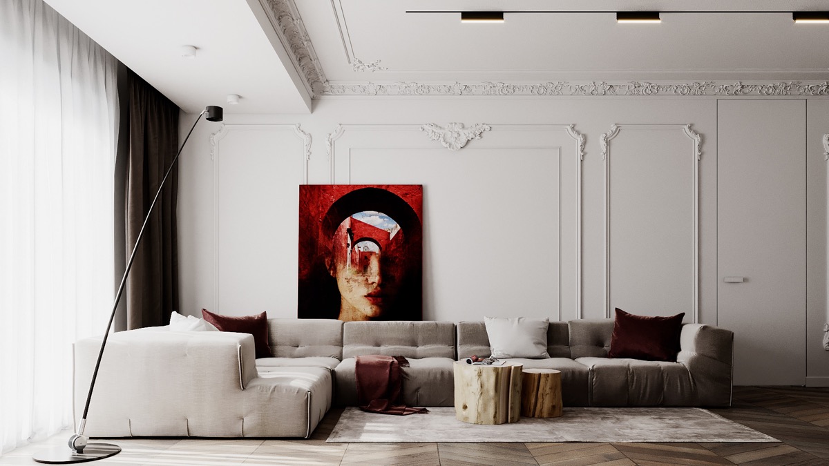 Với không gian phòng khách tối giản, hãy tạo sự sắp xếp đồ đạc thân mật. Vị trí ghế sofa của bạn khuyến khích sự tương tác của mọi người. Điều này giúp căn phòng ấm cúng và có cảm giác gần gũi hơn.