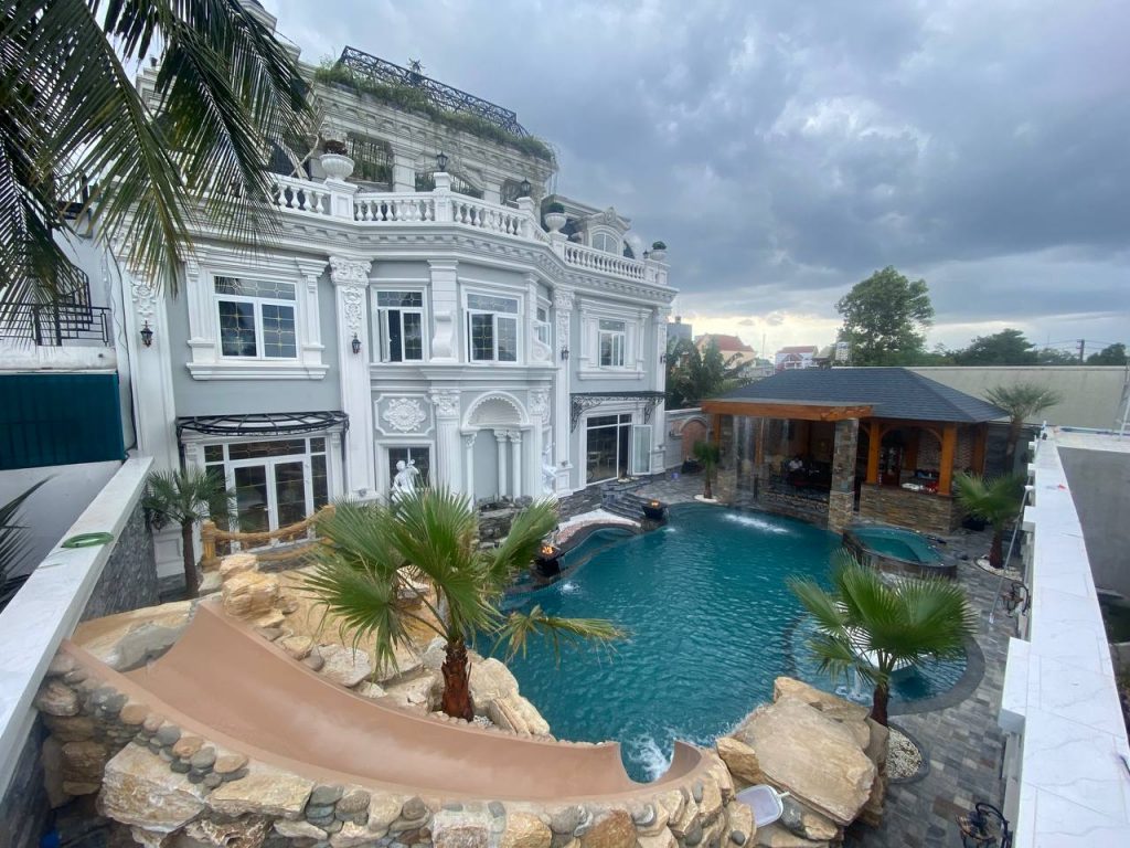 Công nghệ lọc cát, xử lý nước bằng phương pháp điện phân muối, Hồ bơi được thiết kế các công năng jacuzzi thủy trị liệu giúp gia đình sinh hoạt và thư giản, và được trang trí với 1 thác nước cực đẹp.