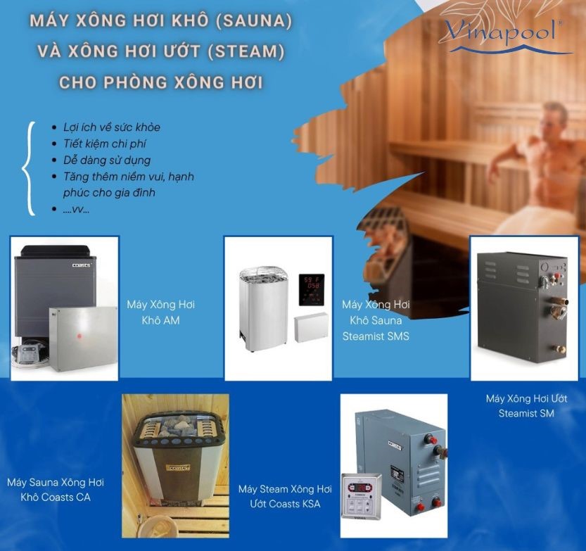 Dưới đây là dòng máy xông hơi khô và xông hơi hơi ướt tại Vinapool cung cấp