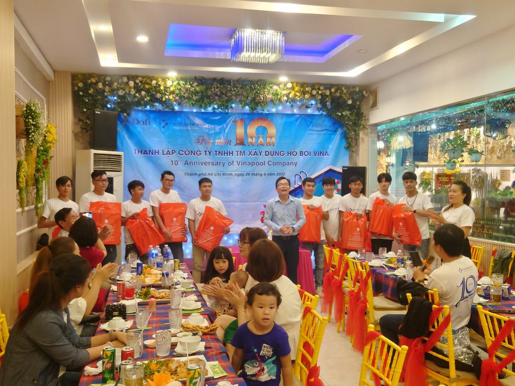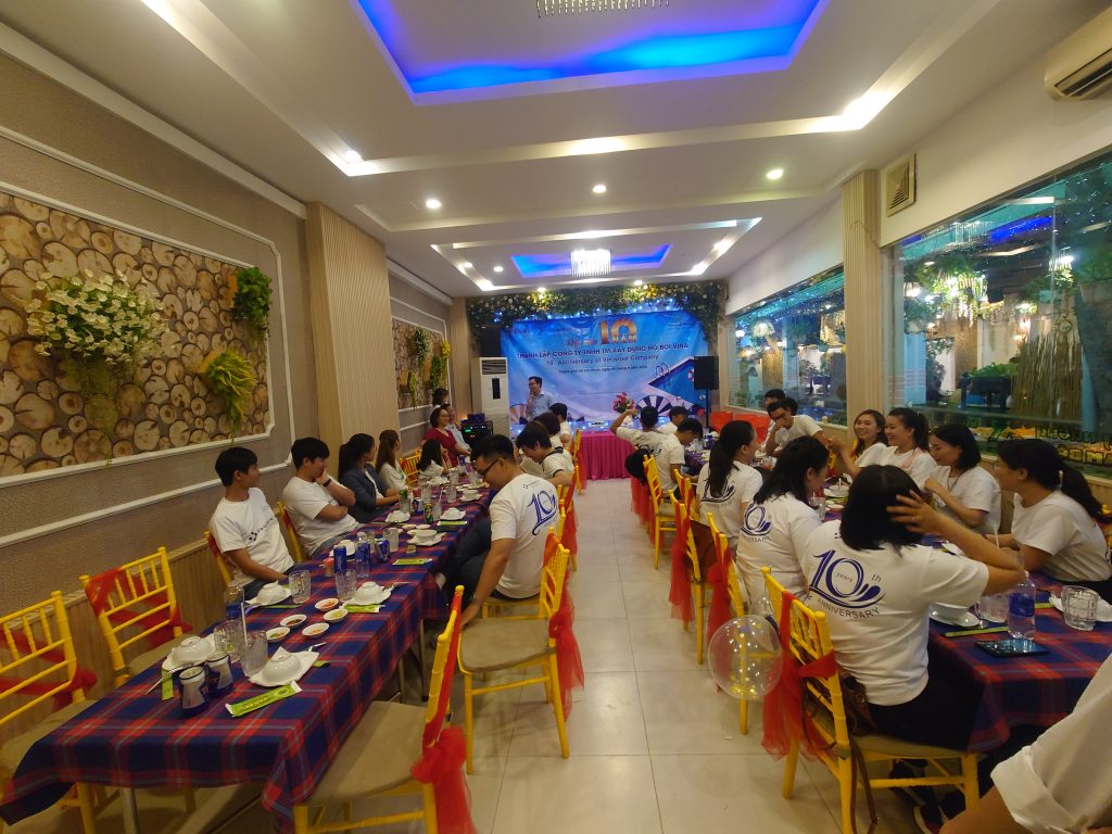 Và để kỉ niệm dấu mốc công ty tròn 10 tuổi, bữa tiệc chúc mừng sinh nhật Công ty đã diễn ra vào ngày 26 tháng 06 vừa qua với sự tham gia của toàn bộ nhân viên trong không khí ấm cúng tại Nhà Hướng Nam bộ Trần Quí Cáp Bình thành Trị Tp.Hồ Chí Minh