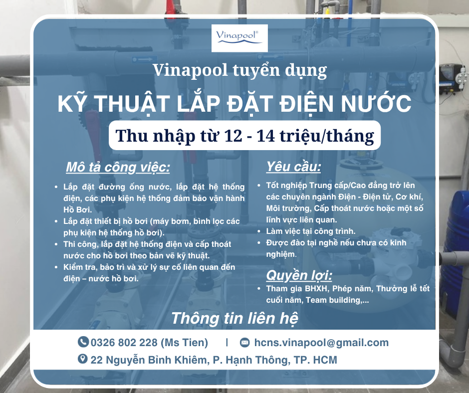Ứng tuyển trực tuyến: gửi CV và thông tin cá nhân về email hcns.vinapool@gmail.com